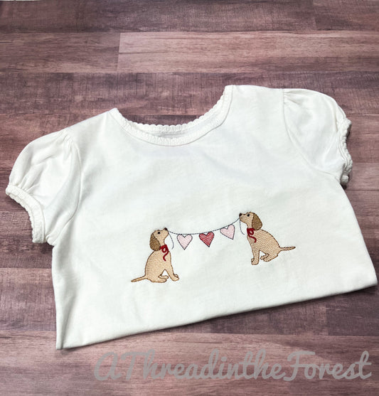 Valentine Puppy with Hearts Embroidered Shirt- Valentine Shirt- Personalized Valentine Shirt